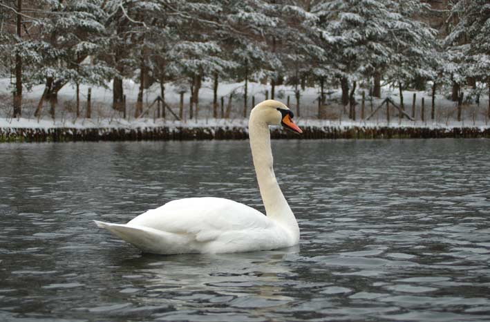 | 軽井沢雲場池 コブハクチョウ 2005.2.19 14:00 小さな美術館軽井沢草花館撮影 |